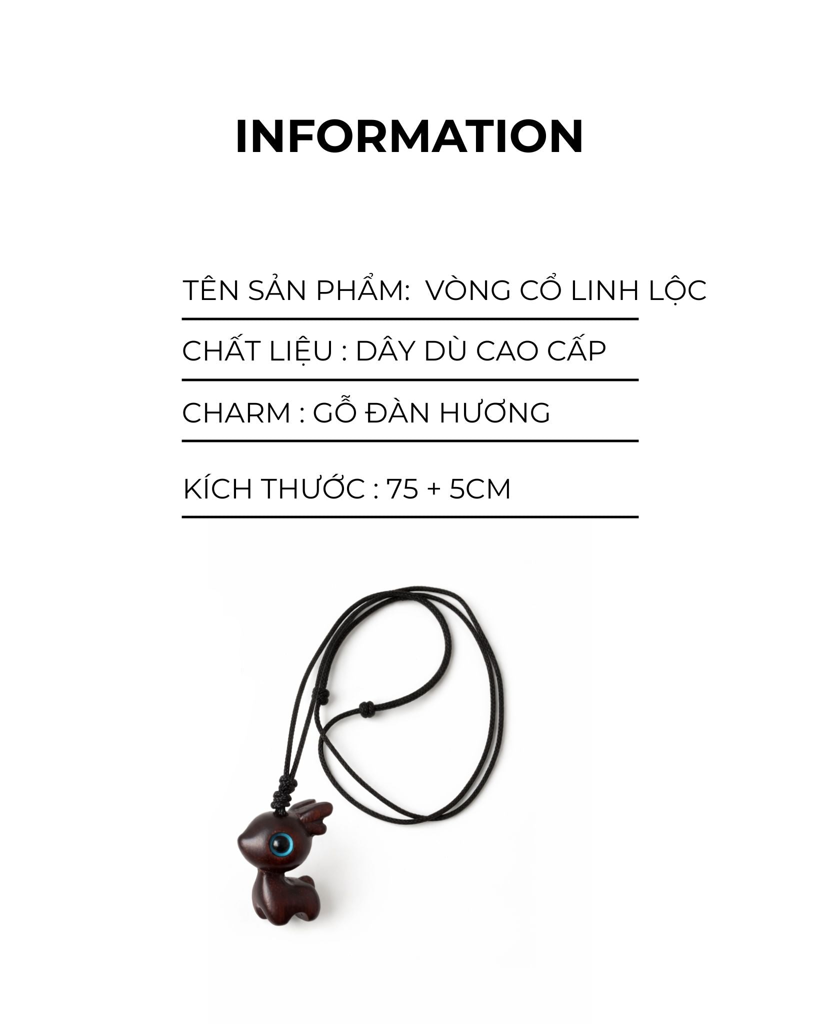 Tại MËDAM, chúng mình tin rằng trang sức không chỉ để ngắm nhìn, mà còn để "cảm". Lấy cảm hứng từ hình tượng Linh Lộc – biểu trưng cho lộc lành và sự khởi sinh, sợi dây chuyền nhỏ nhắn này là sự giao thoa giữa nét văn hóa xưa cũ và hơi thở đương đại. Charm gỗ Đàn Hương tự nhiên mang sắc màu mộc mạc, tỏa hương thơm trầm mặc, dẫn dắt tâm trí về trạng thái an nhiên nhất.